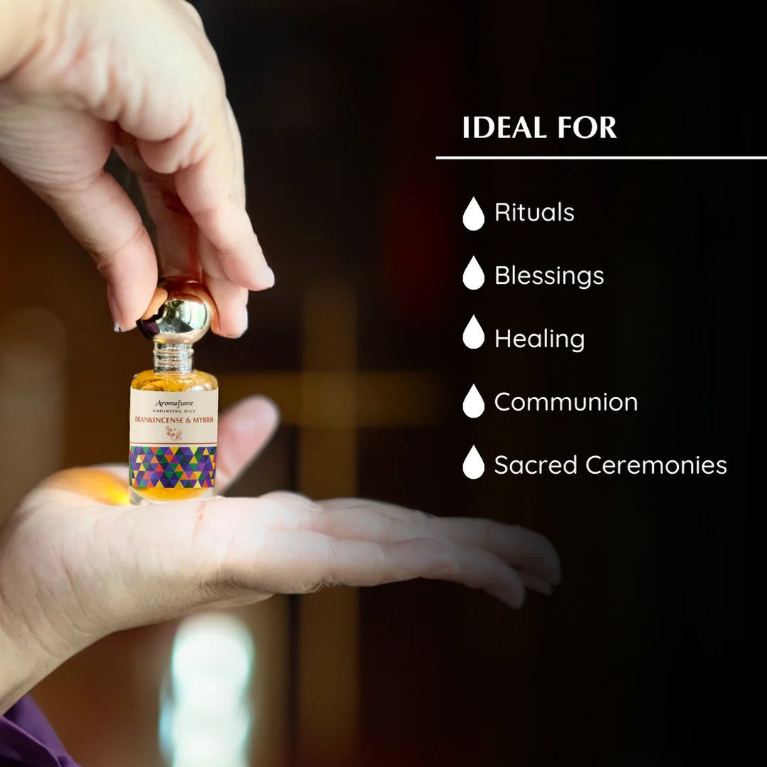 Frankincense & Myrrh Anointing Oil | Balsamic & Soft Woody | Holy oil for prayer and protection | Made with Biblical Spices and Blessed Virgin Olive Oil from Jerusalem