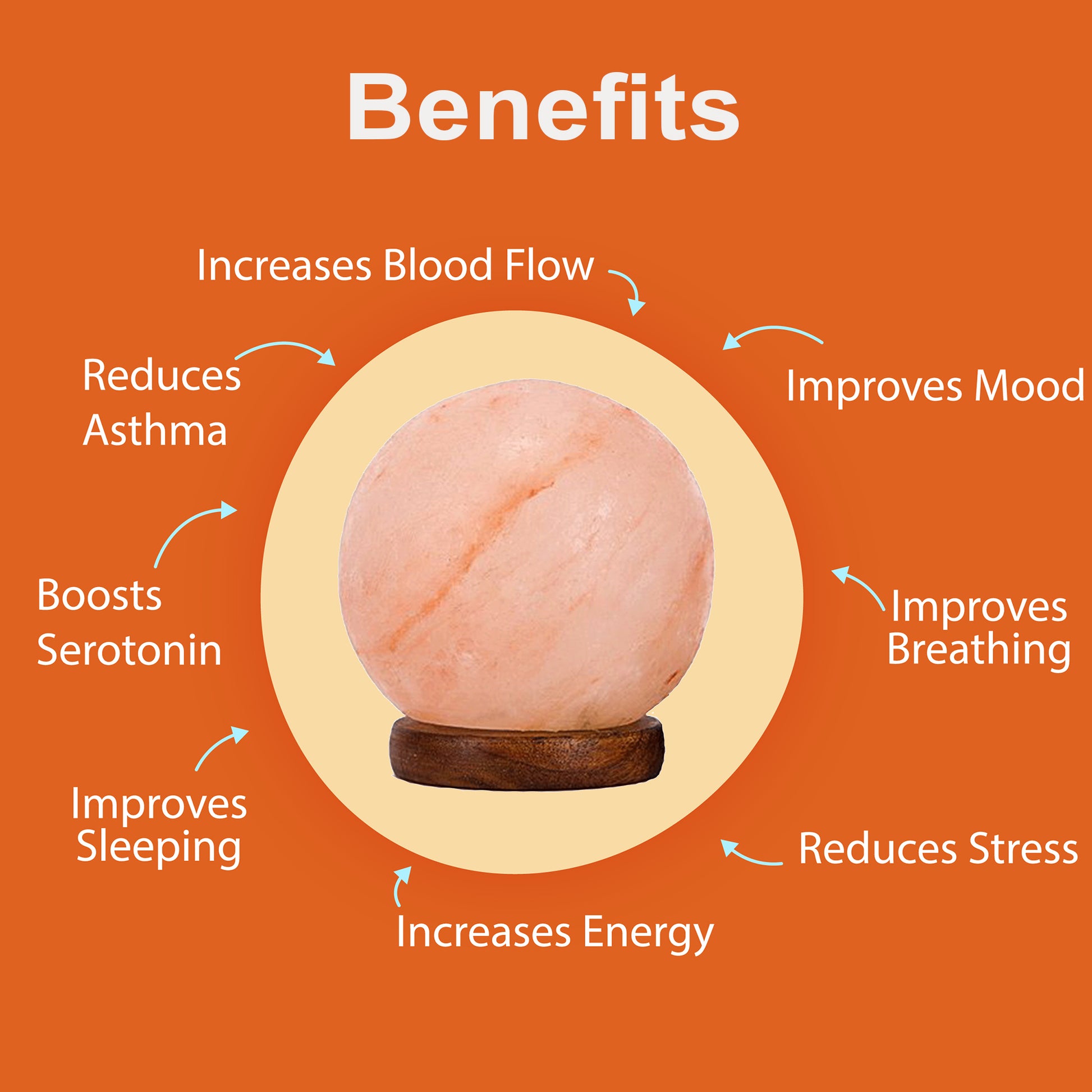 This salt lamp provides negative ions that improve your mood and increase energy levels. You can use this ball salt lamp as a USB through your computer or laptop, they can also be used with a phone charger With fewer impurities.